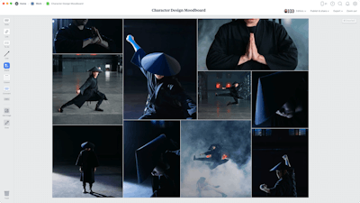 Bring your character and their world to life with a moodboard. It's a great way to both gather and brainstorm visual details about your character including their appearance, interests, environment, and backstory.