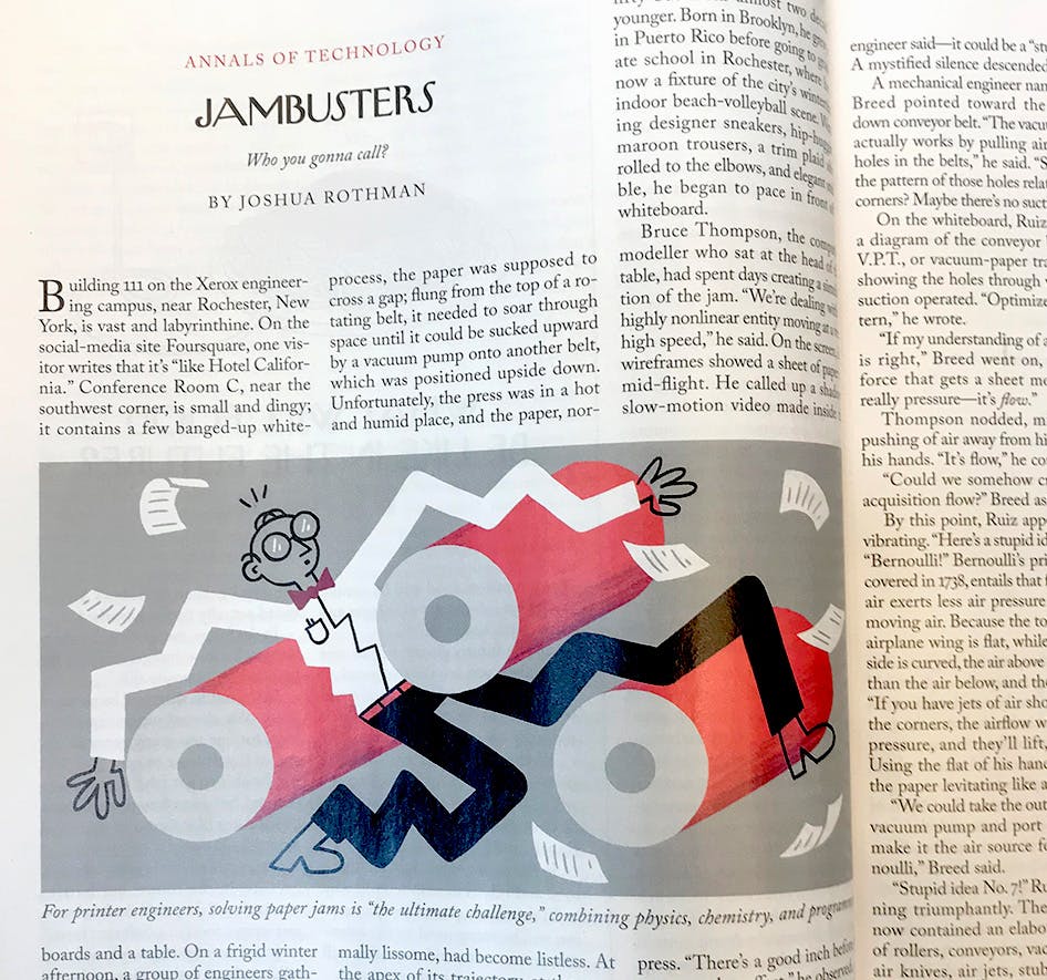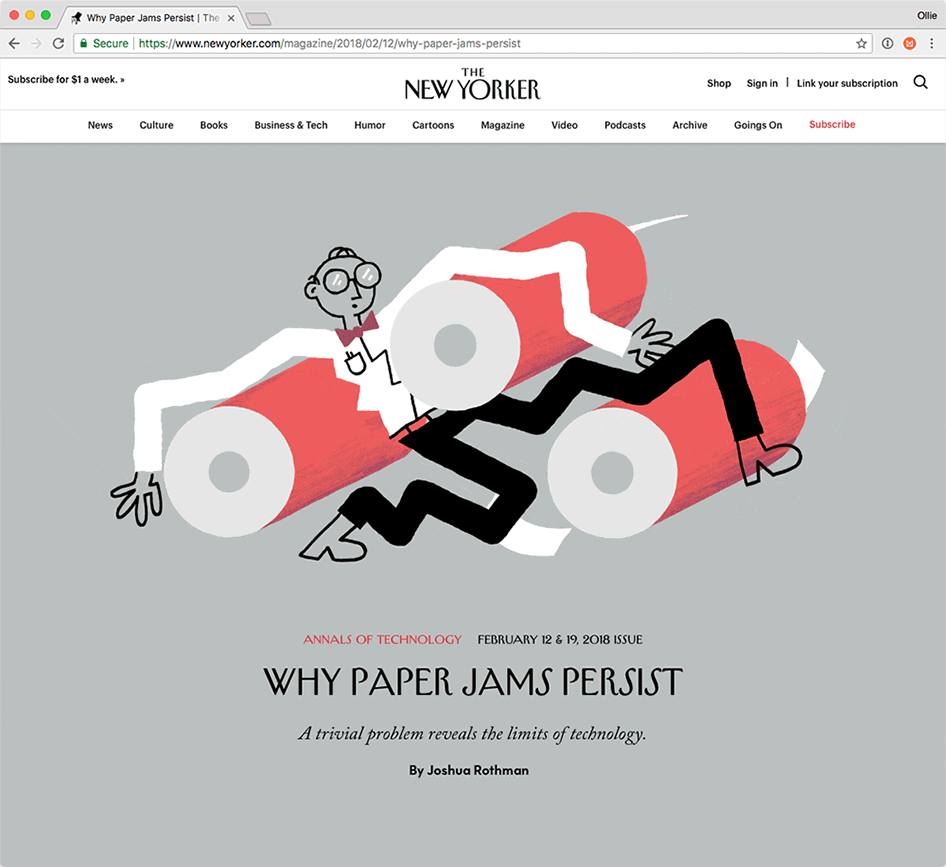 But with mere days for concepting, design and animation, the process of making its editorial illustrations can be frantic. In this article, Daniel Savage walks us through the creation of an illustration for an article on paper jams.