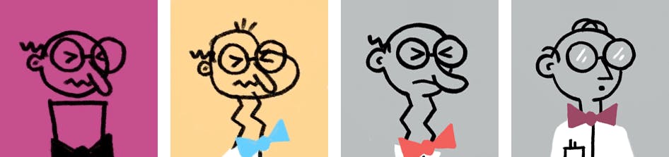 "I was trying to play up the comedy aspect with the face. They liked it but asked for a geometric face so it felt more scientific."