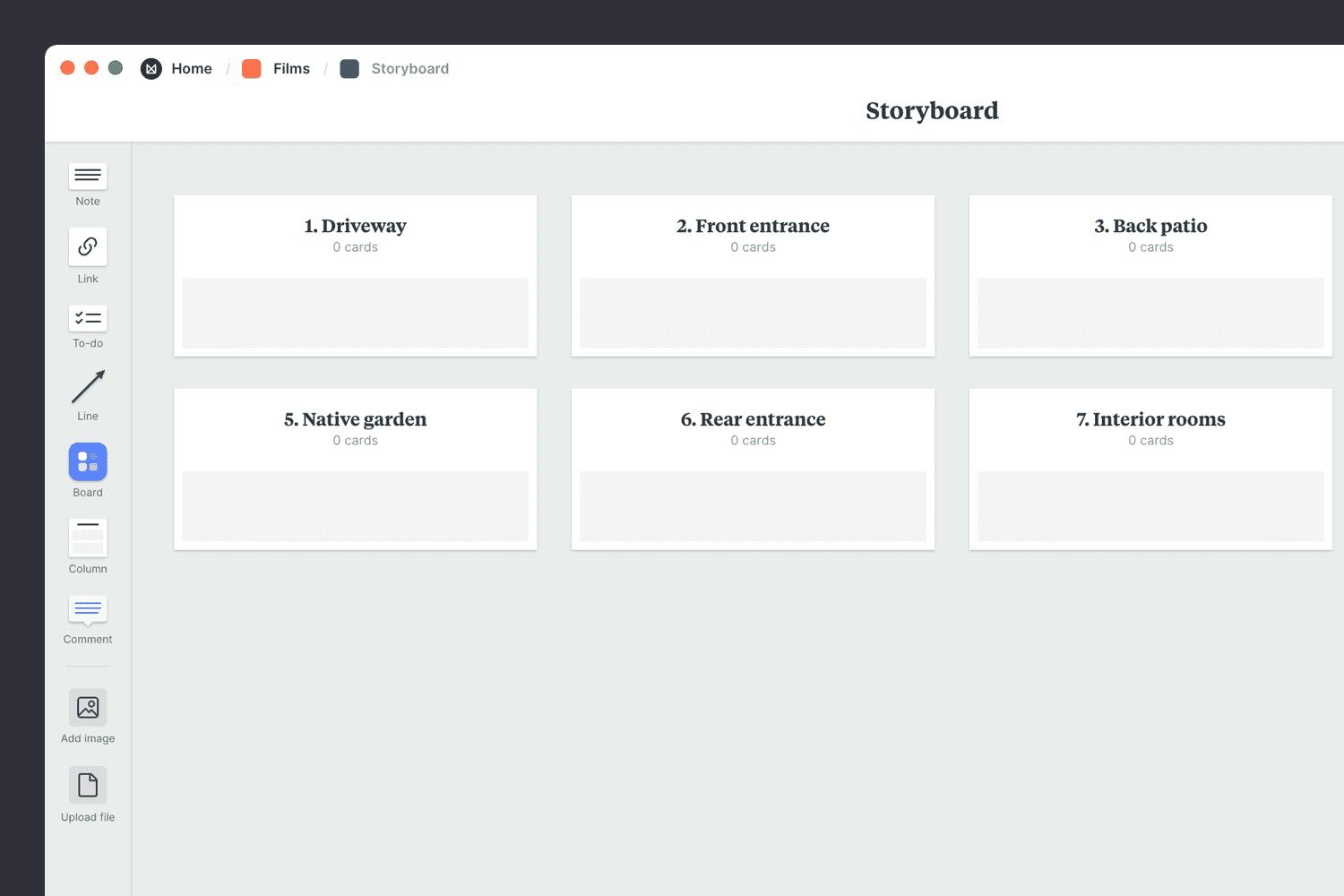 You’ll find the empty Storyboard on the Pre-Production Plan board. Double click the Storyboard to open it and start adding the mapping out the key scenes.