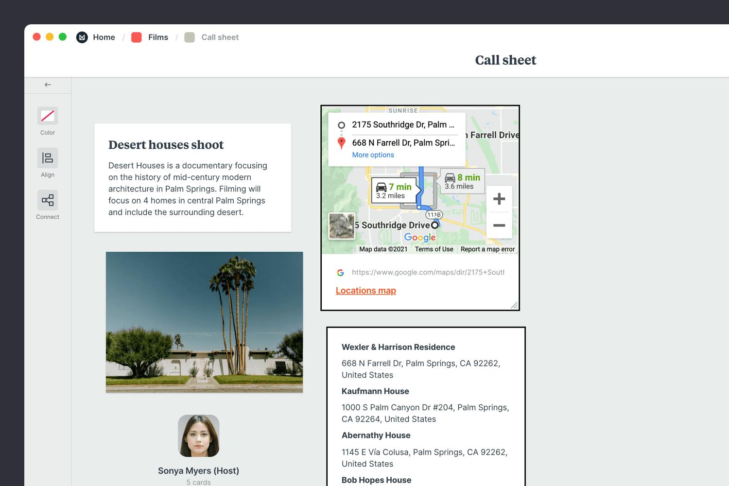 Once you have everything you need, it's time to organize your call sheet so it's easy to scan. Then share it with your team so everyone can start preparing for the shoot.