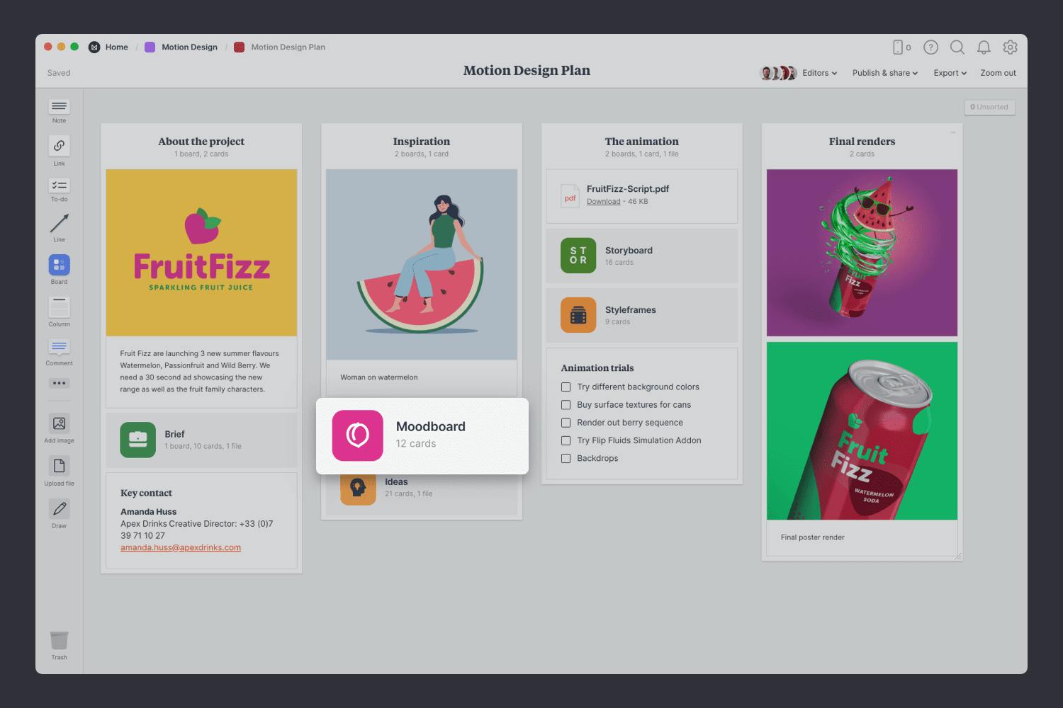 Your moodboard will also be a fantastic reference for your team—from the client to the animators—it helps everyone visualize the end result.