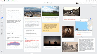 Milanote helps you organize your research in one place and see everything side-by-side. When you do this, new ideas and perspectives start to emerge naturally. This template is part of our guide on How to plan a novel.